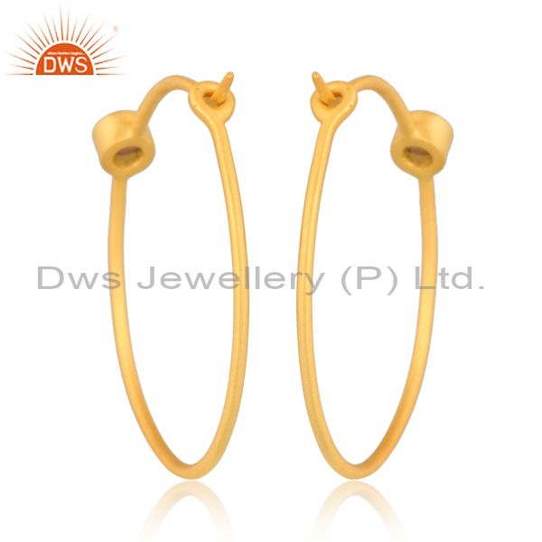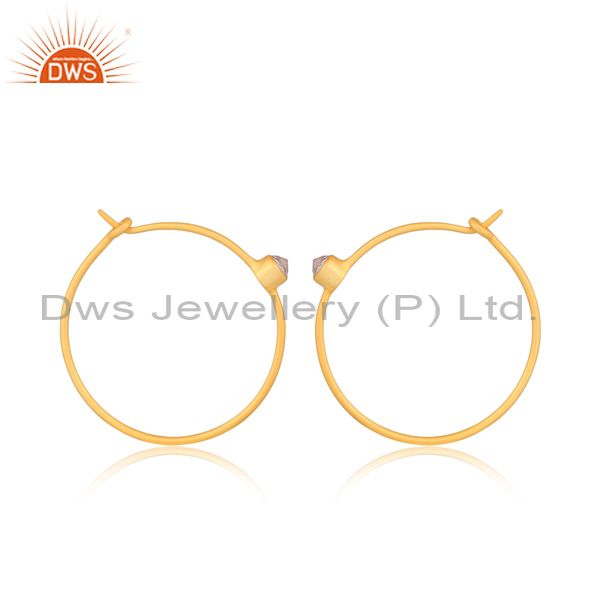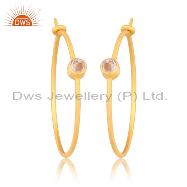 Crystal Quartz Set Gold On Silver Round Hoop Style Earrings