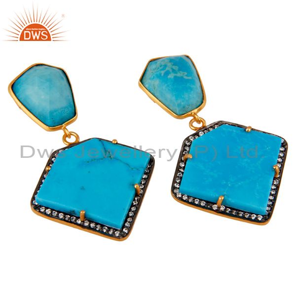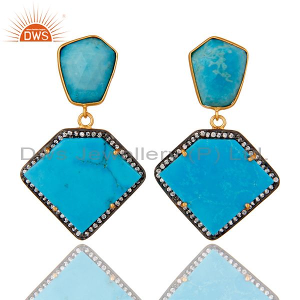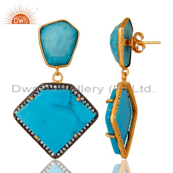 Cultured Turquoise Cubic Zirconia 18K Gold Plated 925 Sterling Silver Earrings