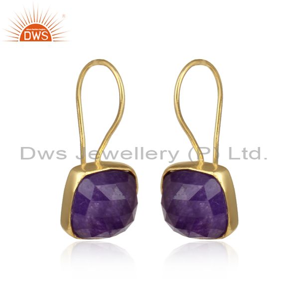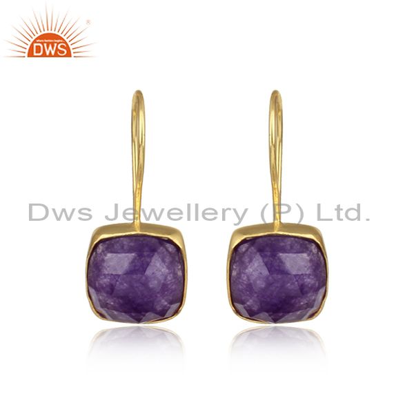 Cushion Shaped Gold On Silver Amethyst Aventurine Earrings