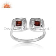 Cushion Shaped Sterling Fine Silver Garnet Stud Earring