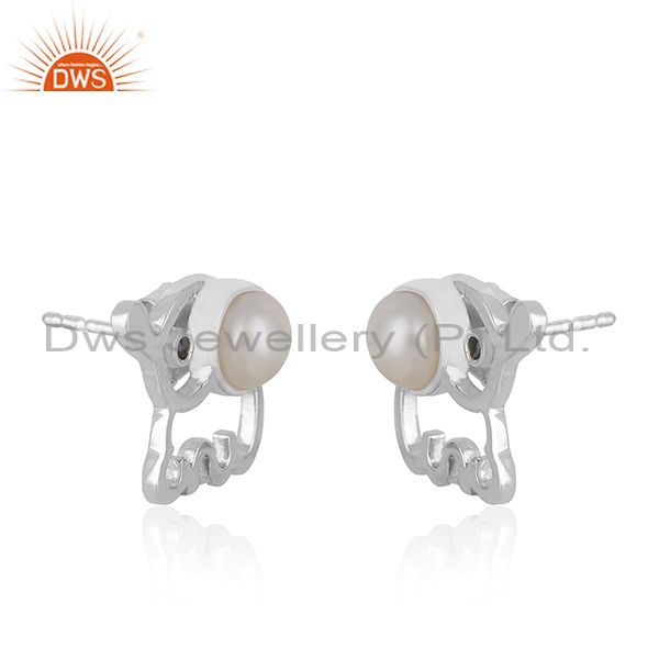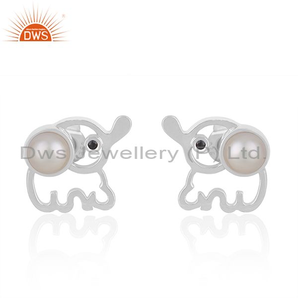Custom Elephant Design 925 Silver Pearl Stud Earring Manufacturer India