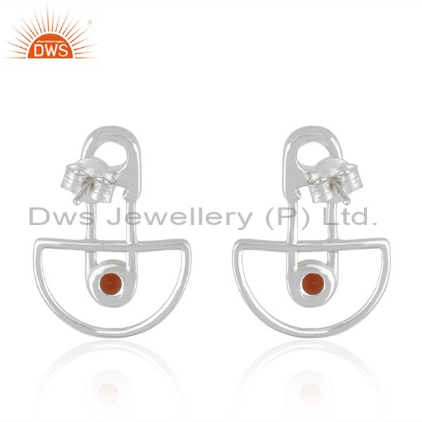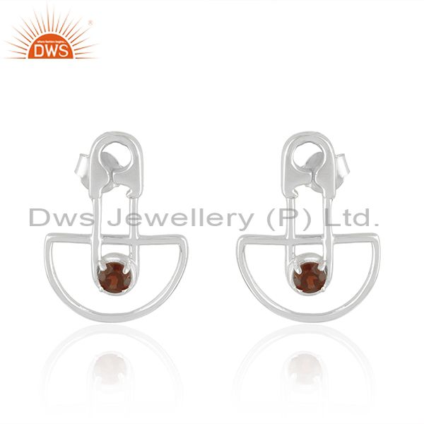 Customized Design 925 Sterling Silver Garnet Gemstone Stud Earrings Manufacturer