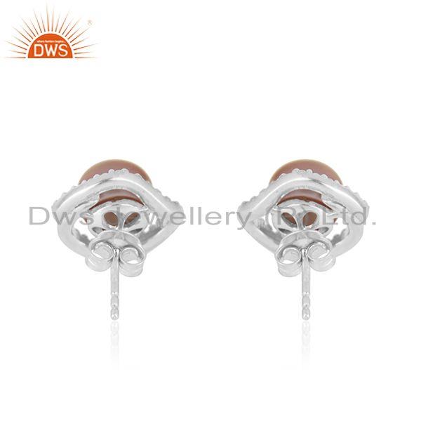 Cute Gray Pearl Gemstone Designer 925 Fine Silver Zircon Stud Earrings
