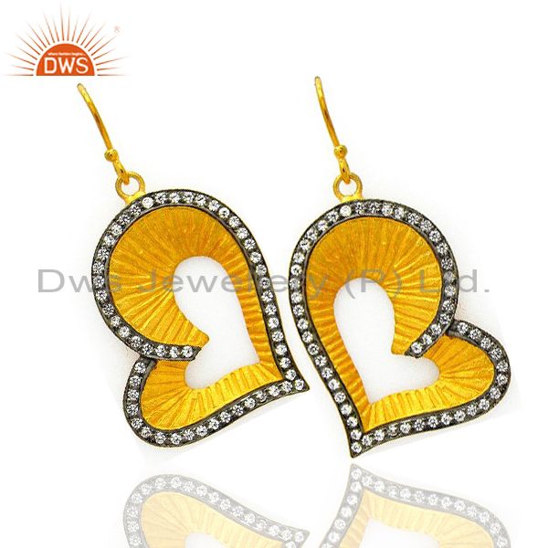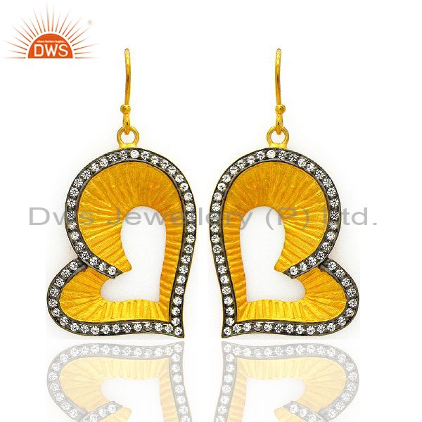 Cz 14K Yellow Gold Plated Handmade Heart Design Dangle Brass Earrings Jewelry