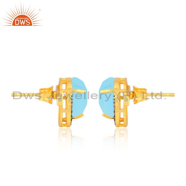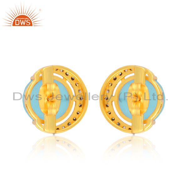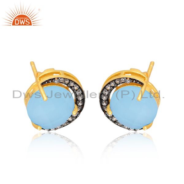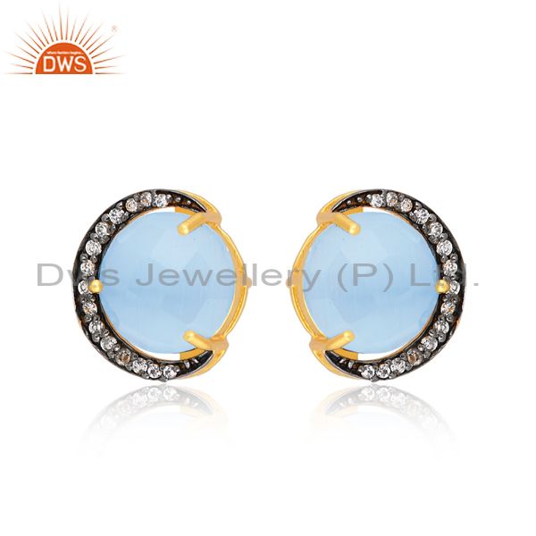 CZ And Aqua Chalcedony Set Gold And Black On Silver Earrings
