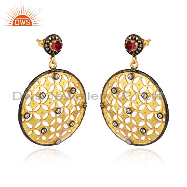 Cz And Hydro Pink Set Brass Gold Turkish Pattern Earrings