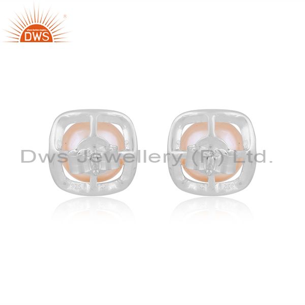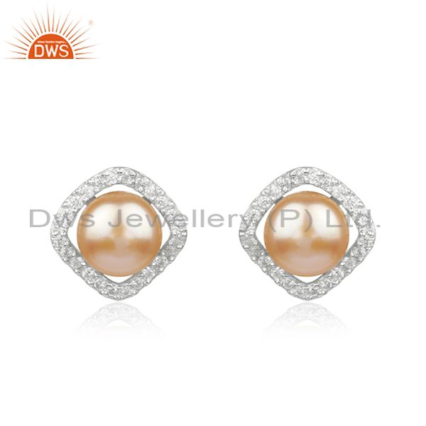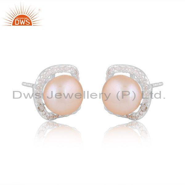 Cz And Pink Pearl Set Fine 925 Silver Statement Earrings