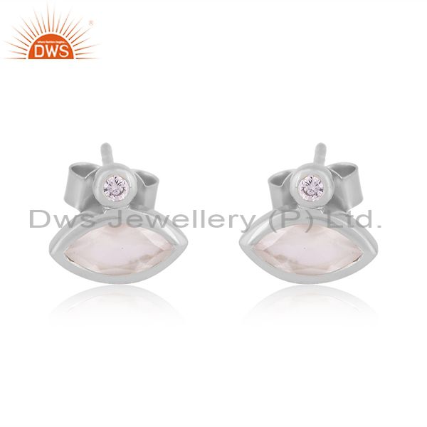Cz And Rainbow Moon Stone Handmade Fine 925 Silver Earrings