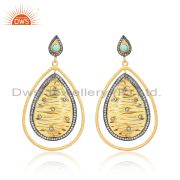 Cz, Arizona Turquoise Set Gold On Silver Tear Drop Earrings
