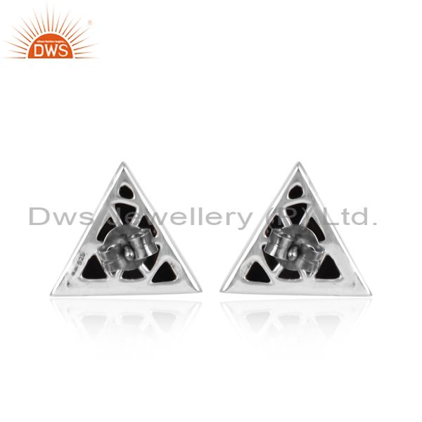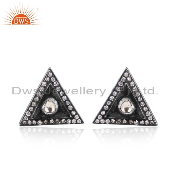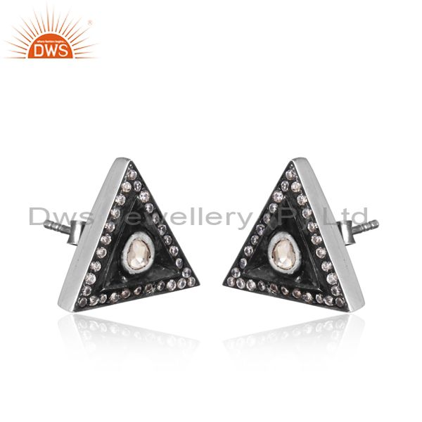 CZ, Crystal Quartz Oxidized Silver Triangle Shaped Earrings