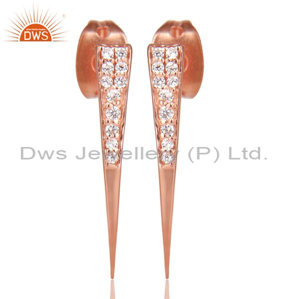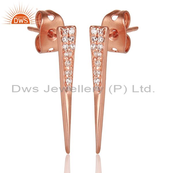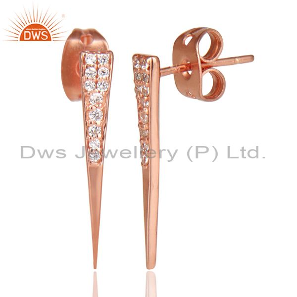 Cz Gemstone Stud 14K Rose Gold Plated 925 Sterling Silver Earrings Jewelry
