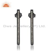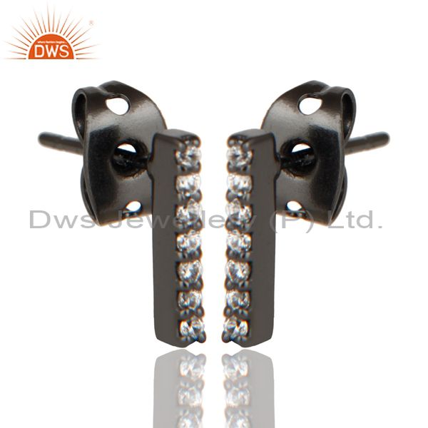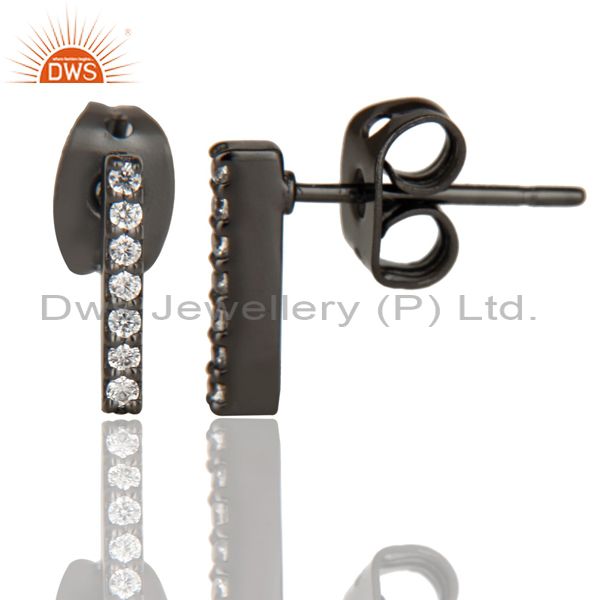 Cz Gemstone Stud Black Oxidized 925 Sterling Silver Earrings Exclusive Jewelry