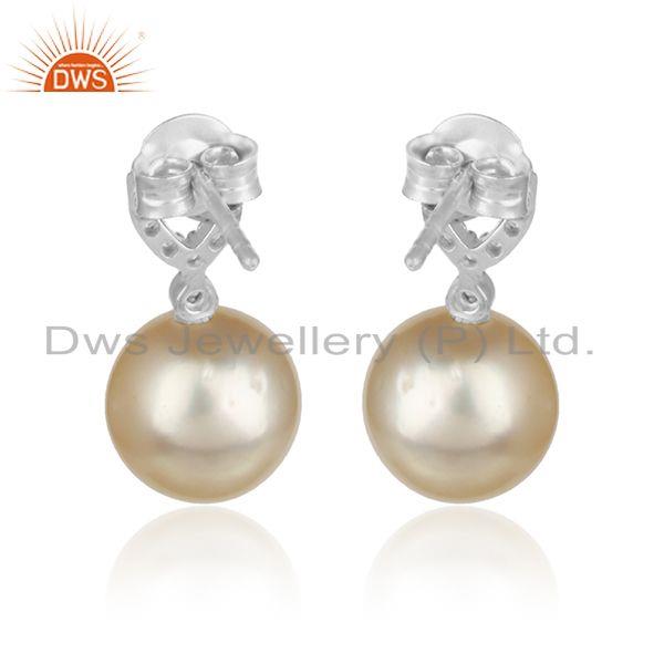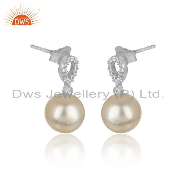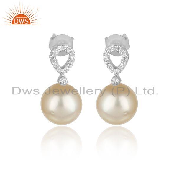 CZ Natural Pearl Gemstone White Rhodium Plated Designer Earrings