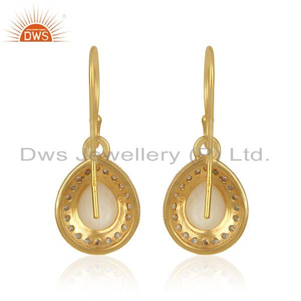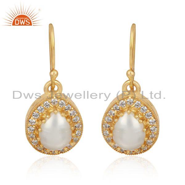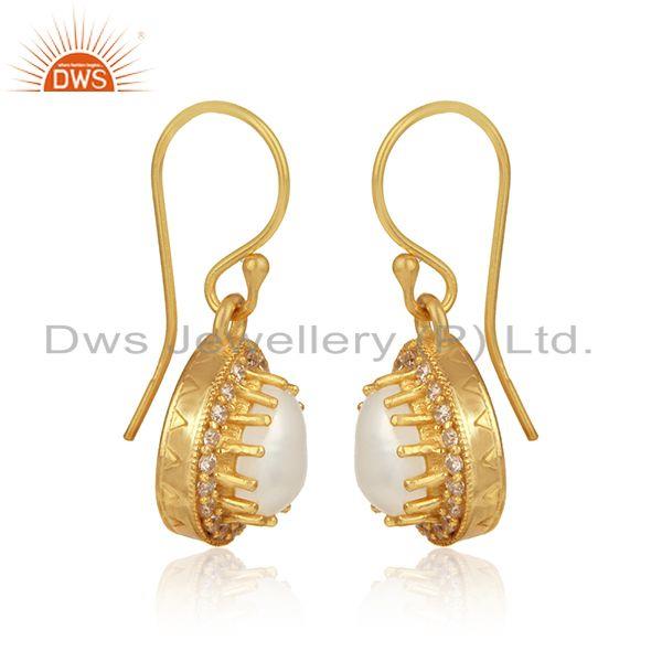 Cz Pearl Gemstone Designer 18K Gold Plated 925 Silver Earrings