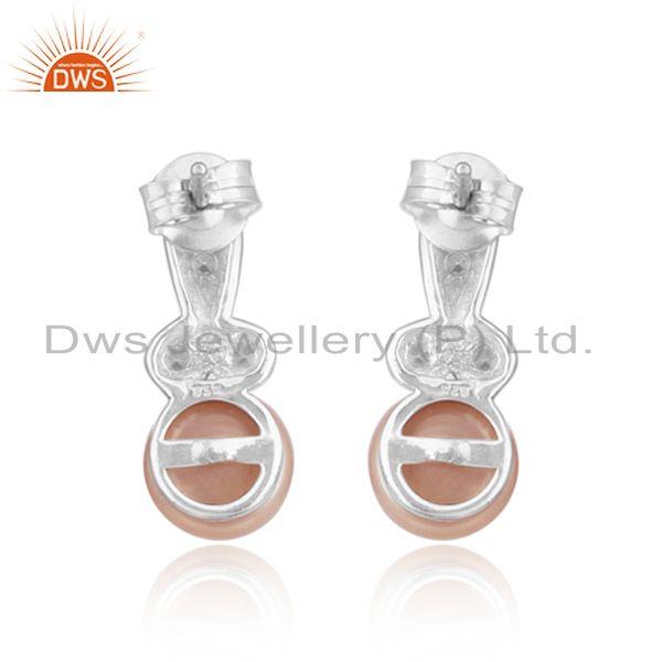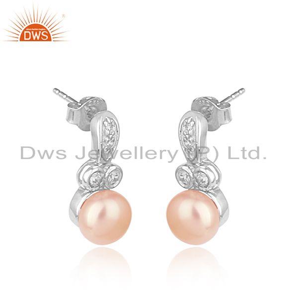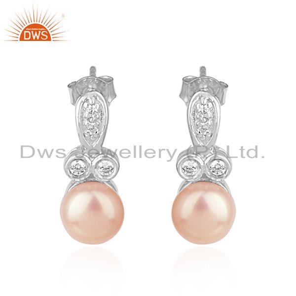 Cz Pink Pearl Gemstone 925 Silver White Rhodium Plated Earring Jewelry
