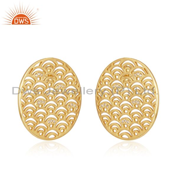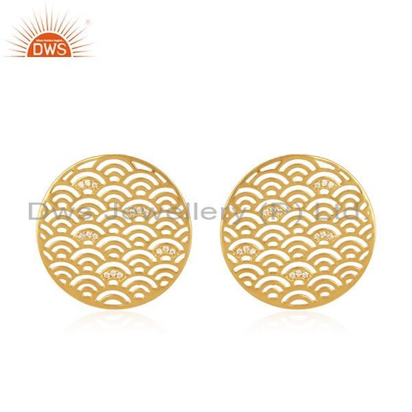 CZ Round Filigree Gold Plated Silver Designer Stud Earrings For Womens