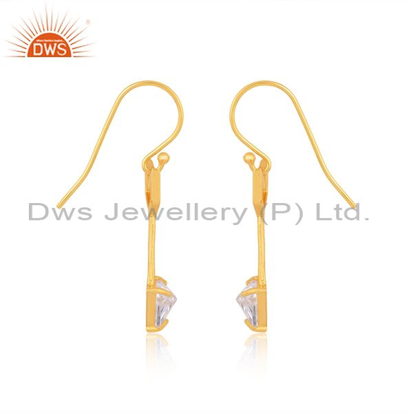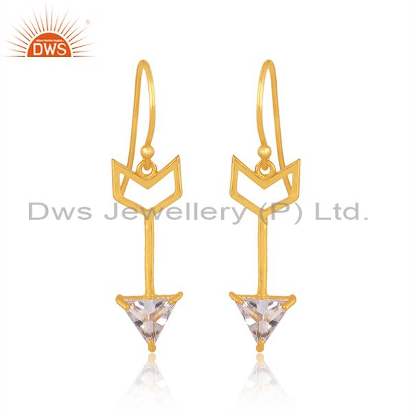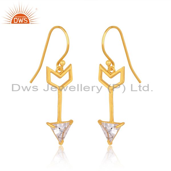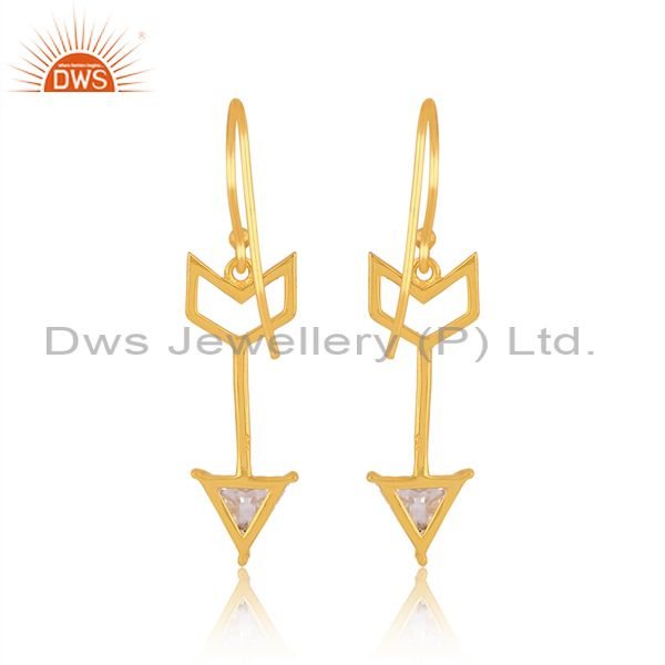 CZ Set Gold On Sterling Silver Arrow Style Earwire Earrings