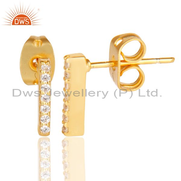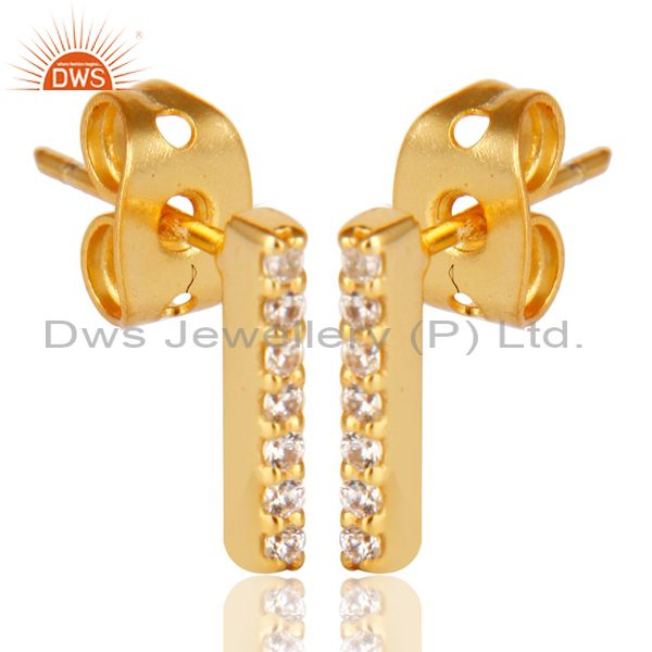 Cz Stud 14K Yellow Gold Plated 925 Sterling Silver Earrings Exclusive Jewelry