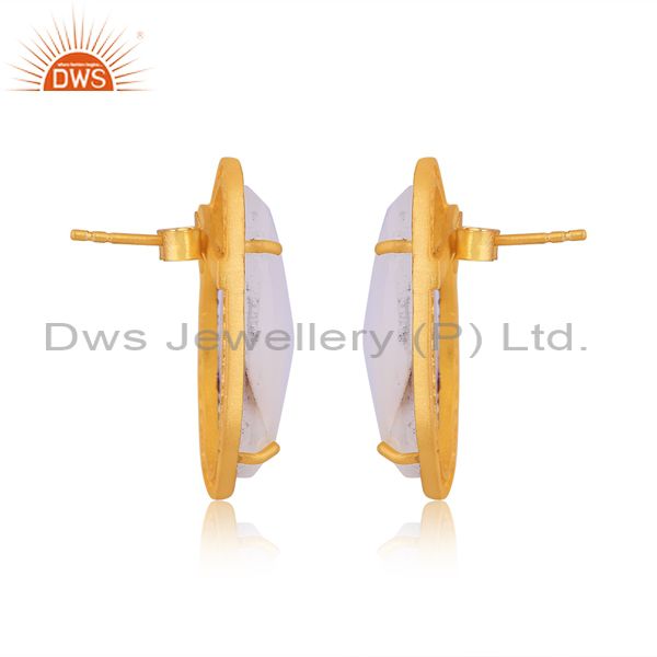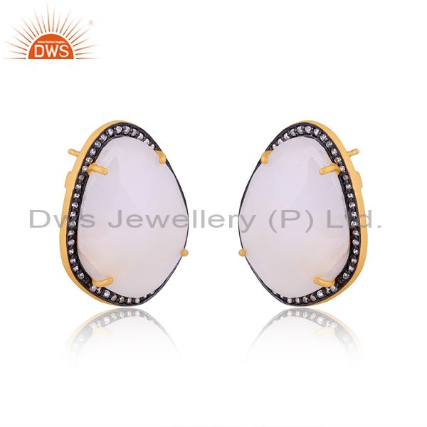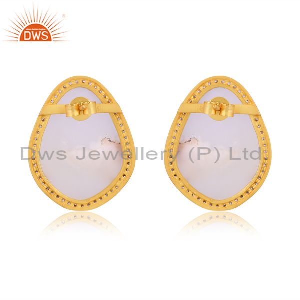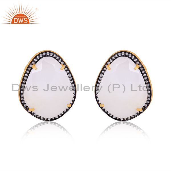 CZ White Moonstone Gold Plated 925 Silver Stud Earrings