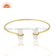CZ White Moonstone Pencil Design Gold Plated Silver Stud Earrings