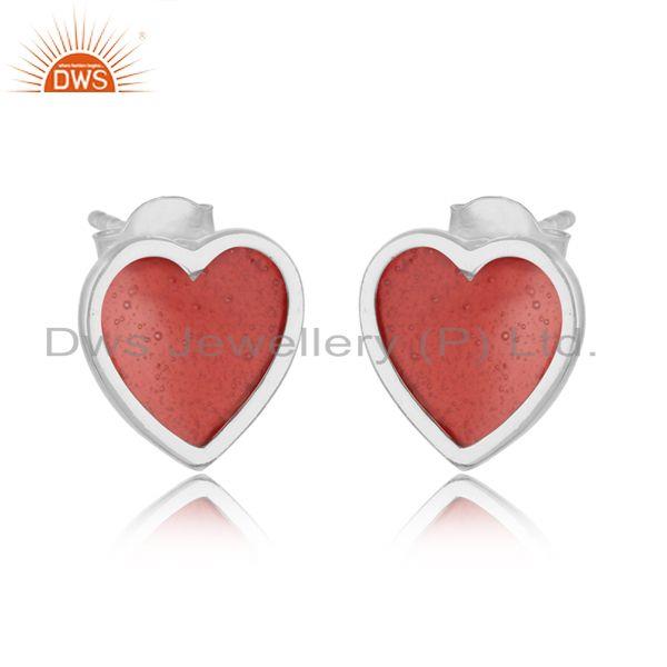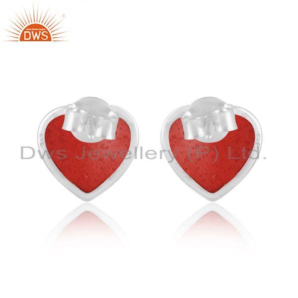 Dainty Stud In White Rhodium On Silver 925 With Light Red Enamel