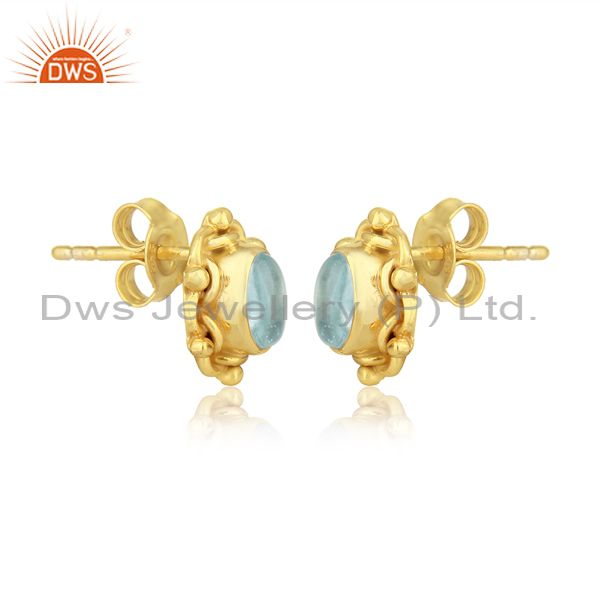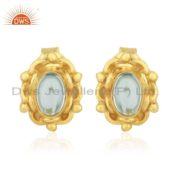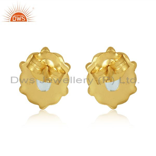 Dainty Texture Earring In Yellow Gold Over Silver With Blue Topaz