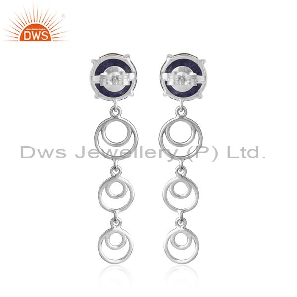 Dangle Design White Rhodium Plated Silver Tanzanite Earrings