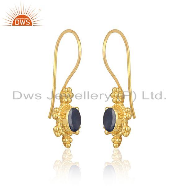 Dangle Earring In Yellow Gold On Silver 925 With Blue Sapphire