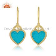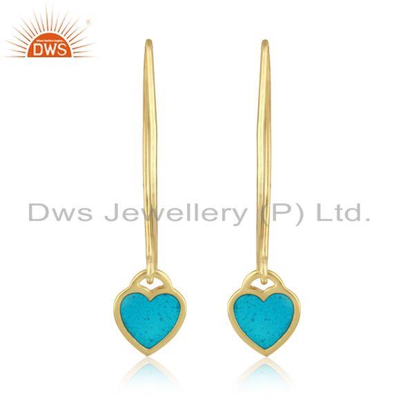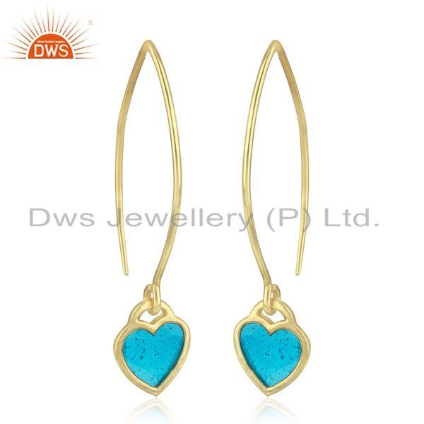 Dangle Earring In Yellow Gold Plated Silver With Light Blue Enamel