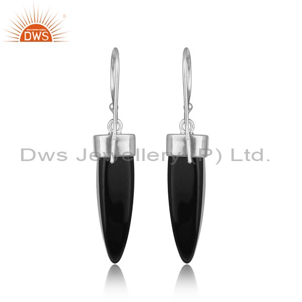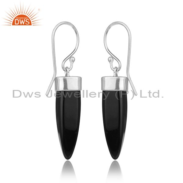 Dangle Silver 925 Earring With Black Onyx Horn and White Rhodium