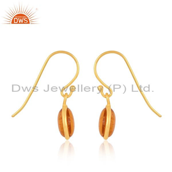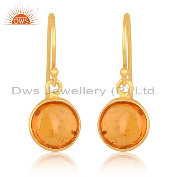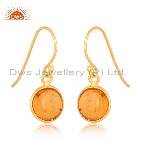 Dazzling Gold Plated Silver Earring With Amber Culture Plain