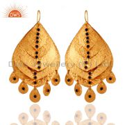 Designer 18K Gold On Sterling Silver Fine Quality Blue Sapphire Gemstone Earring