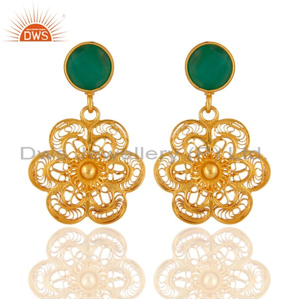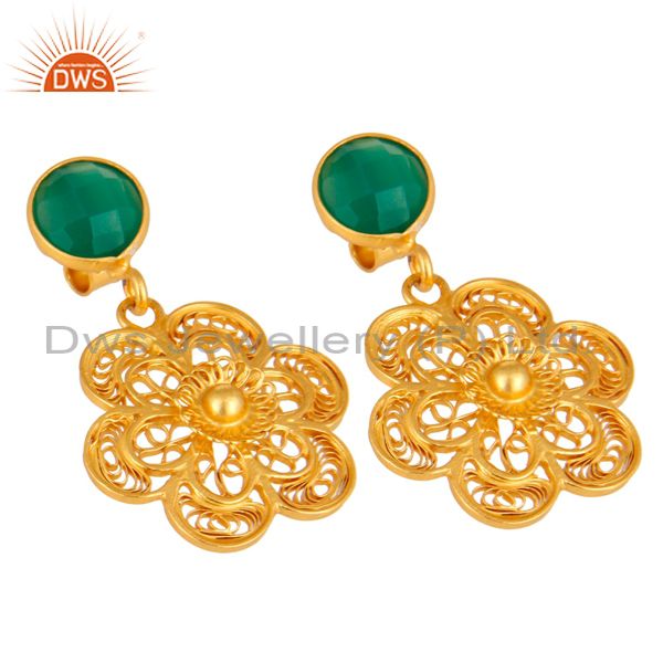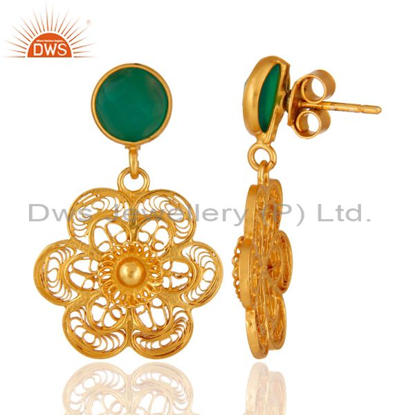 Designer 18K Gold Plated 925 Sterling Silver Green Onyx Gemstone Earring