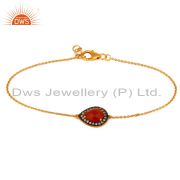 Designer 18K Gold Plated Handmade Sterling Silver Red Onyx Gemstone Earrings