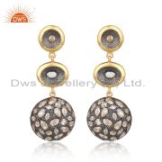 Designer 18K Yellow Gold Plated Sterling Silver Crystal Quartz Dangle Earrings