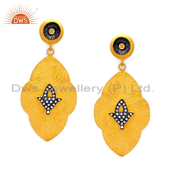 Designer 18K Yellow Gold Plated Sterling Silver Cubic Zirconia Dangle Earrings