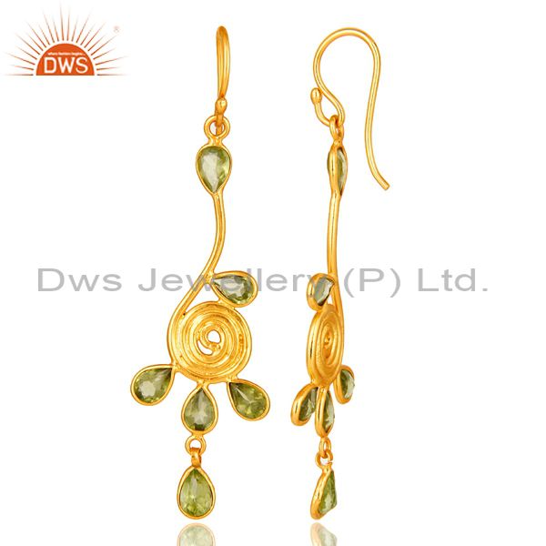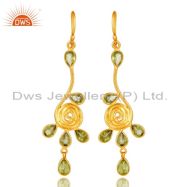 Designer 18K Yellow Gold Plated Sterling Silver Peridot Gemstone Dangle Earrings