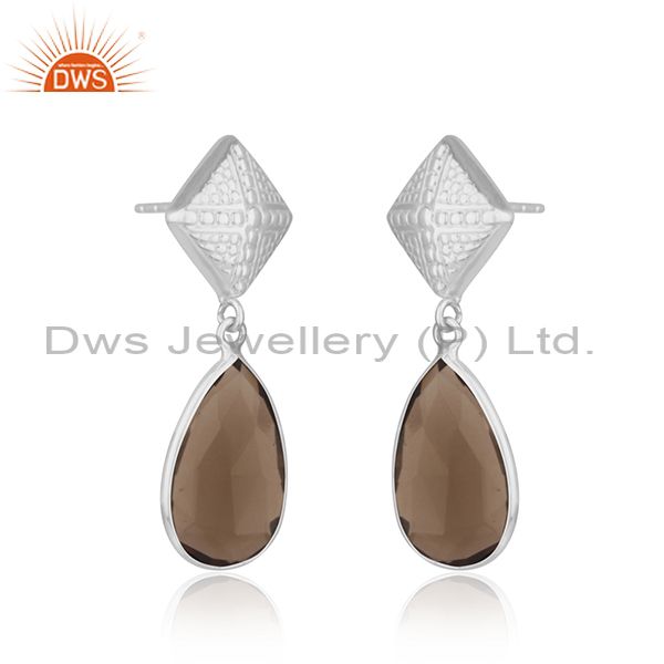 Designer 92.5 Silver Mark Smoky Quartz Gemstone Girls Earring Manufacturer India