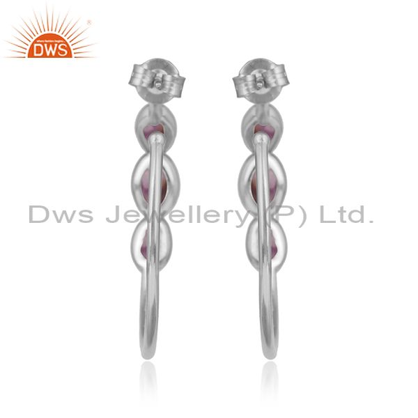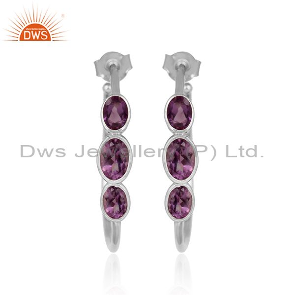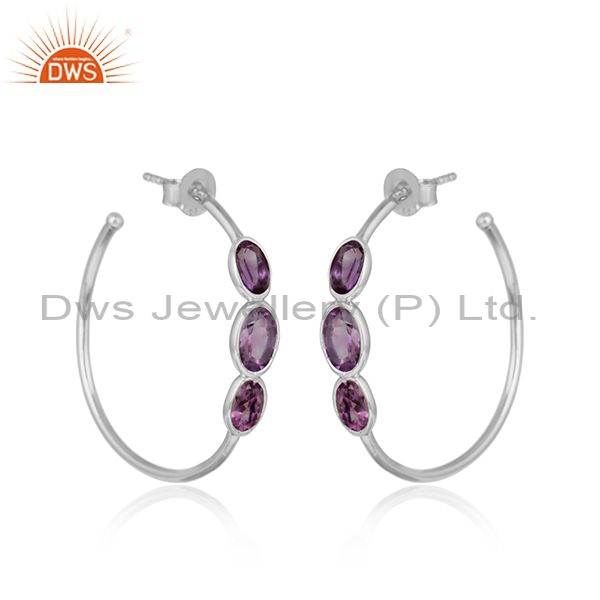Designer 925 Sterling Fine Silver Amethyst Gemstone Hoop Earrings