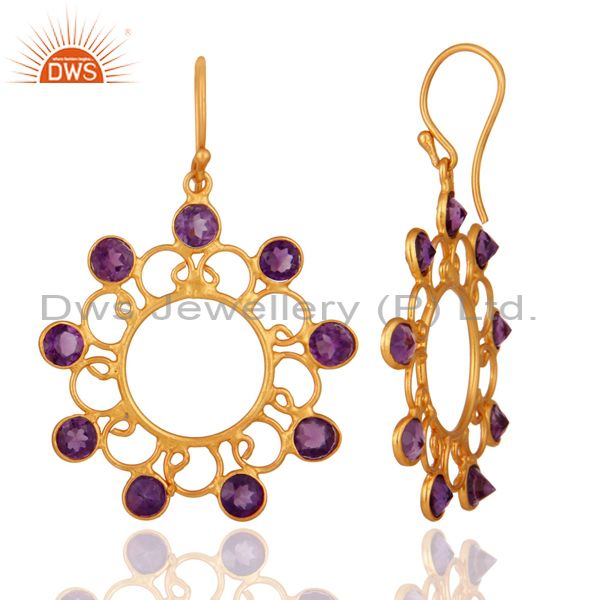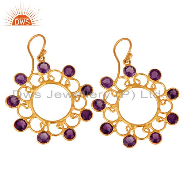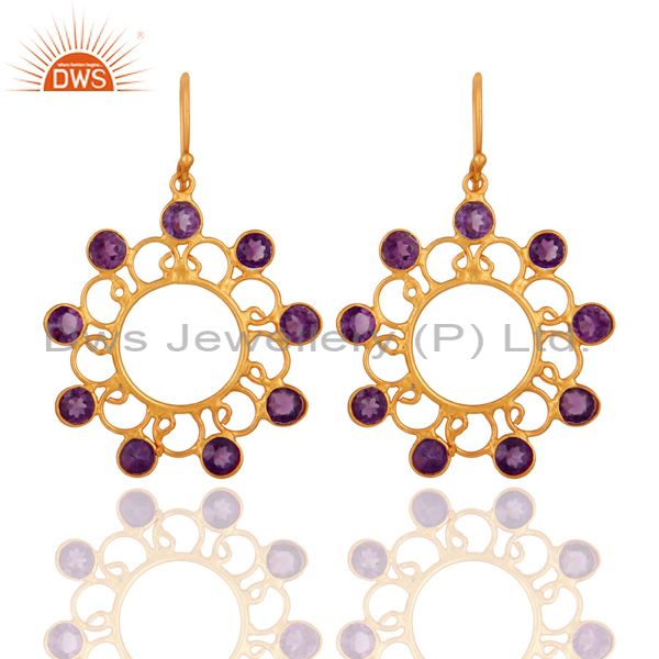 Designer 925 Sterling Silver Amethyst Gemstone Earring With 24K Gold Plated