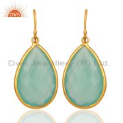 Designer 925 Sterling Silver Dyed Aqua Blue Chalcedony Earrings - Gold Plated