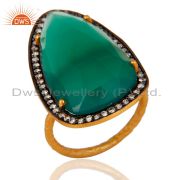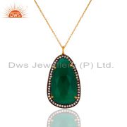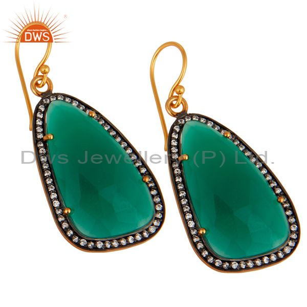 Designer 925 Sterling Silver Green Onyx & White Zircon Earring With Gold Plated