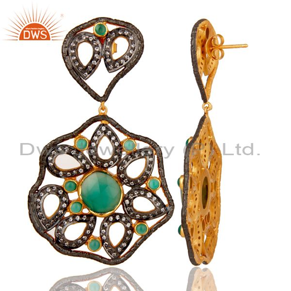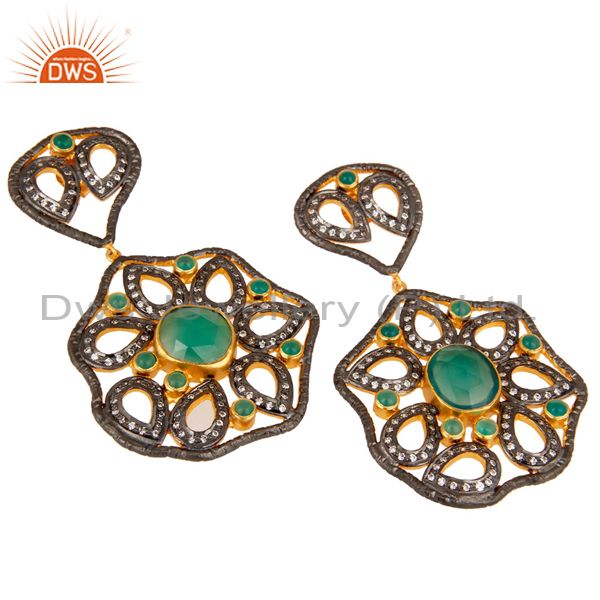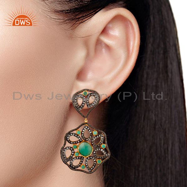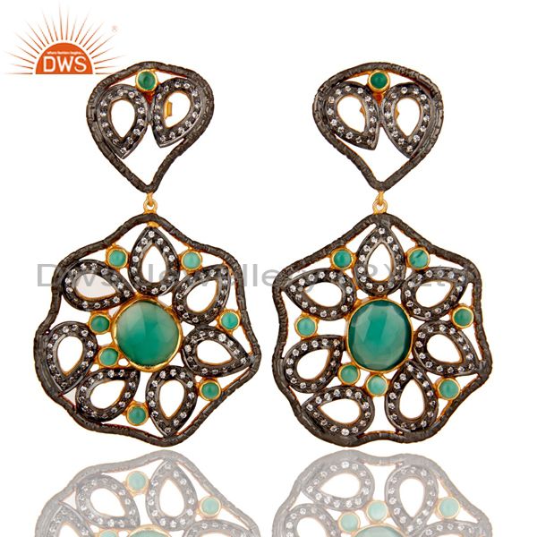 Designer 925 Sterling Silver Handmade Green Onyx Earring With Zircon