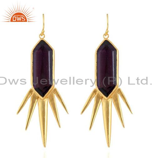 Designer Amethyst 22K Yellow Gold Plated Brass Spike Design Dangle Earrings