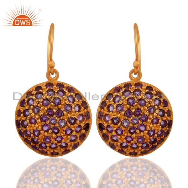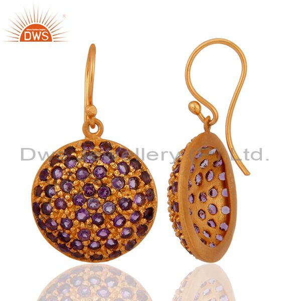 Designer Amethyst Gemstone Dangle Earrings Made In 18K Gold Over Sterling Silver