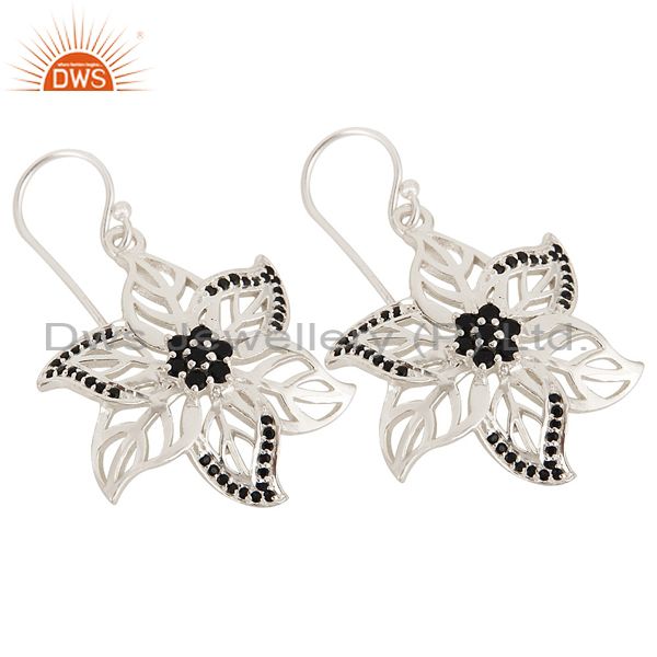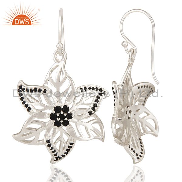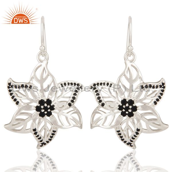 Designer Black Spinel Gemstone 925 Sterling Silver Leaf Dangle Earrings