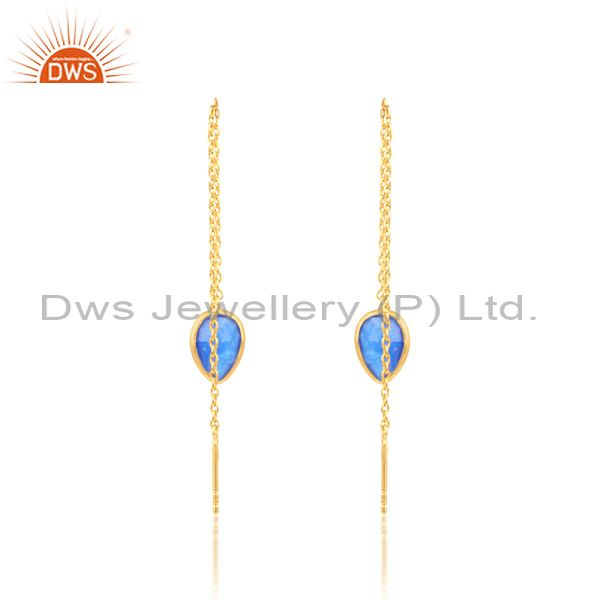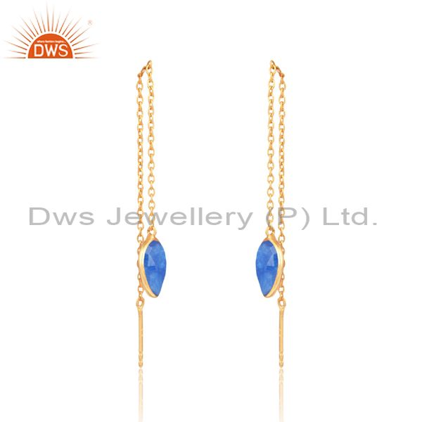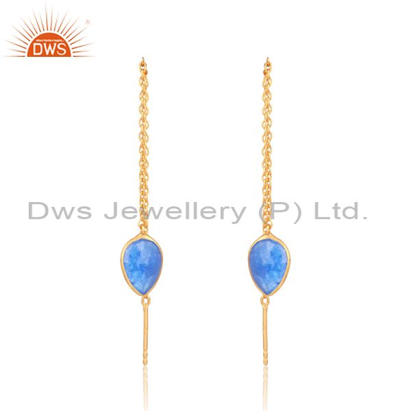 Designer Chain Dangle In Yellow Gold On Silver Blue Aventurine