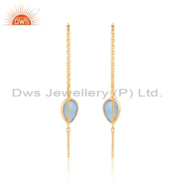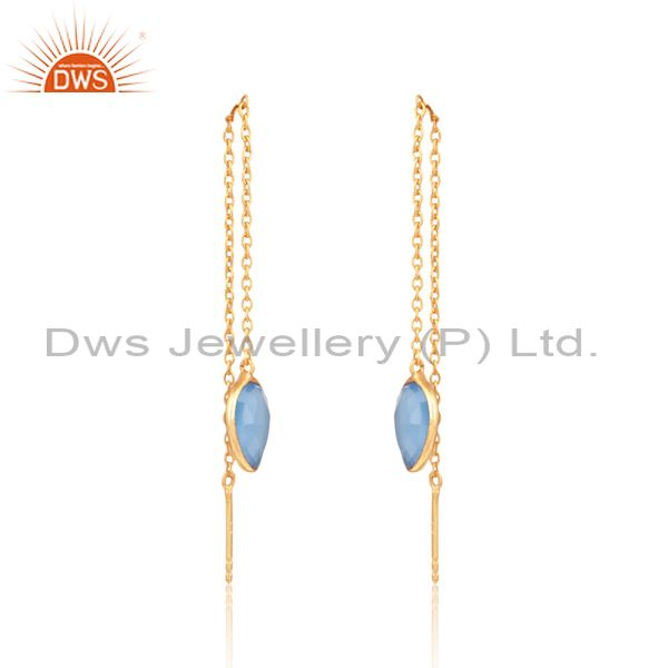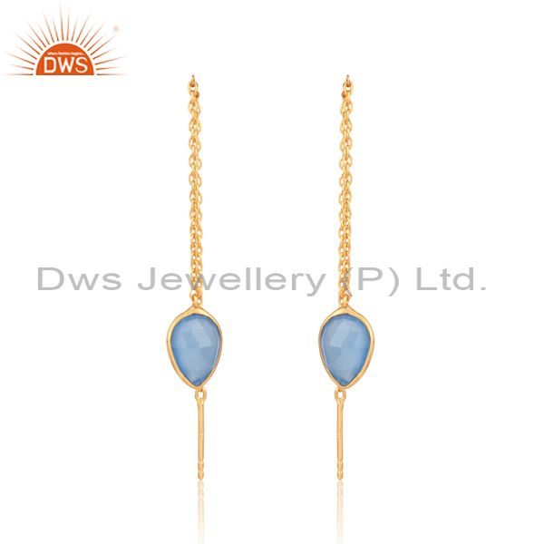 Designer Chain Dangle In Yellow Gold On Silver Blue Chalcedony