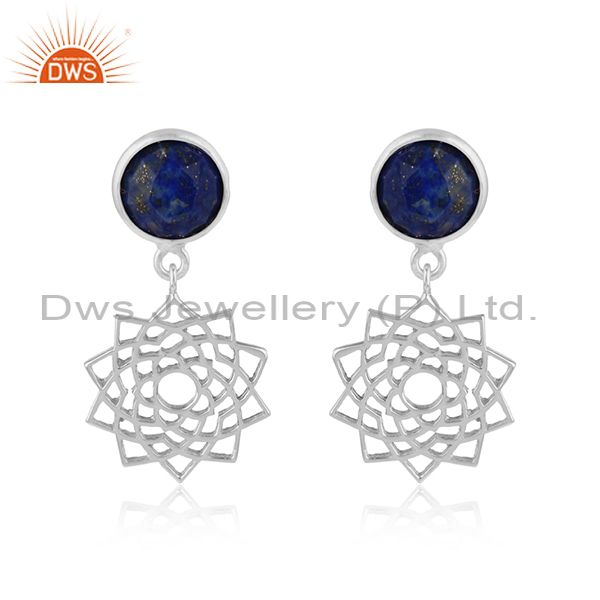 Designer Crown Chakra Earring in Solid Silver With Lapis