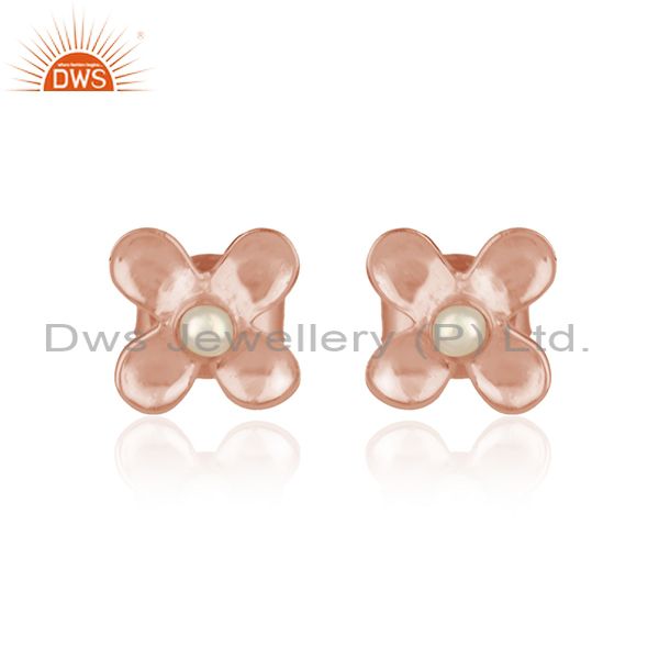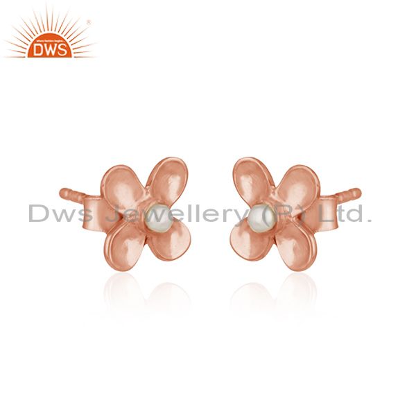 Designer Dainty Earring in Rose Gold on Silver 925 with Pearl